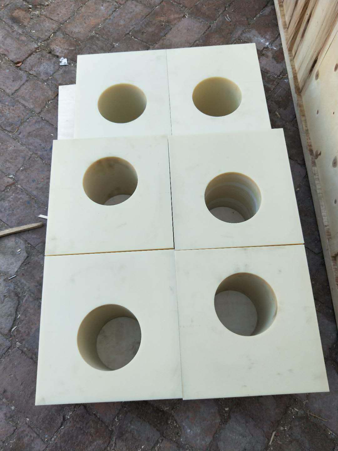 尼龙制品具有高耐磨、耐腐蚀、耐冲击、自润滑,可制作装煤、水泥、石灰、 矿粉、盐、谷物类粉状材料的料斗、料仓、 滑槽的衬里。由于它具有优良的耐摩性、自润滑性及不粘性,使上述粉状材料对储运设备,不发生粘附现象,保证稳定运输。